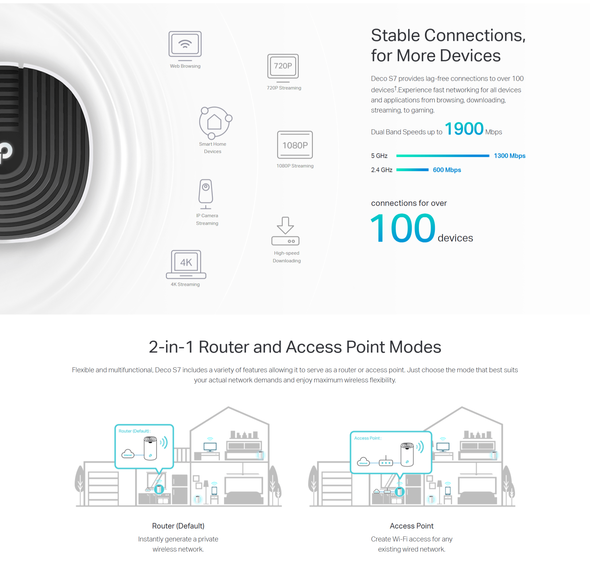 Connect 100+ Devices – Deco handles traffic from even the busiest of networks, providing lag-free connections for over 100 devices.†