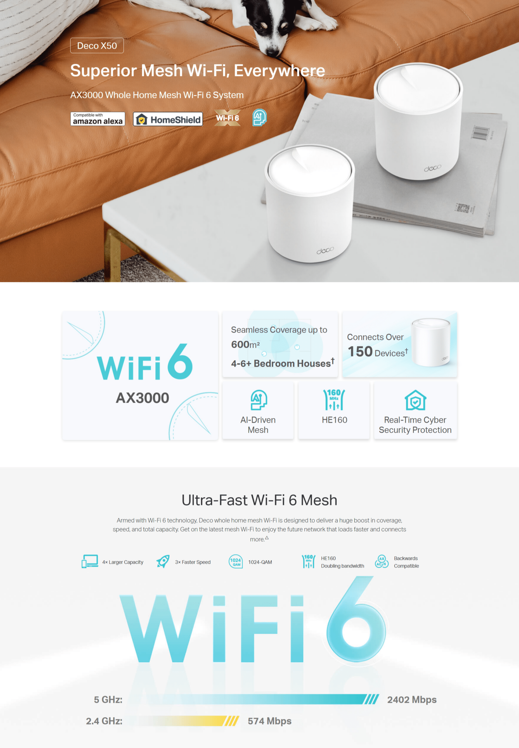 Deco X50 AX3000 Whole Home Mesh Wi-Fi 6 System