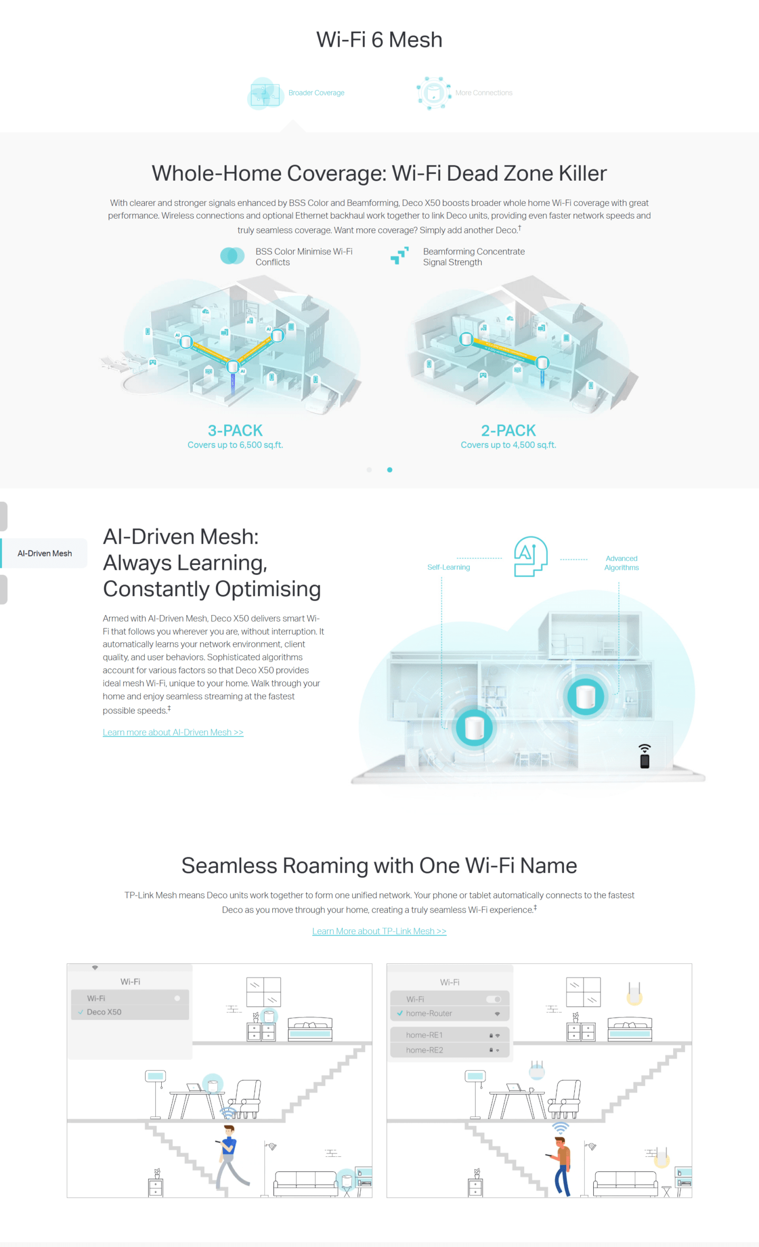 TP-Link Mesh Technology AI-Driven Mesh 2× Internal Antennas (Deco X50 V1.0~V2.0) |