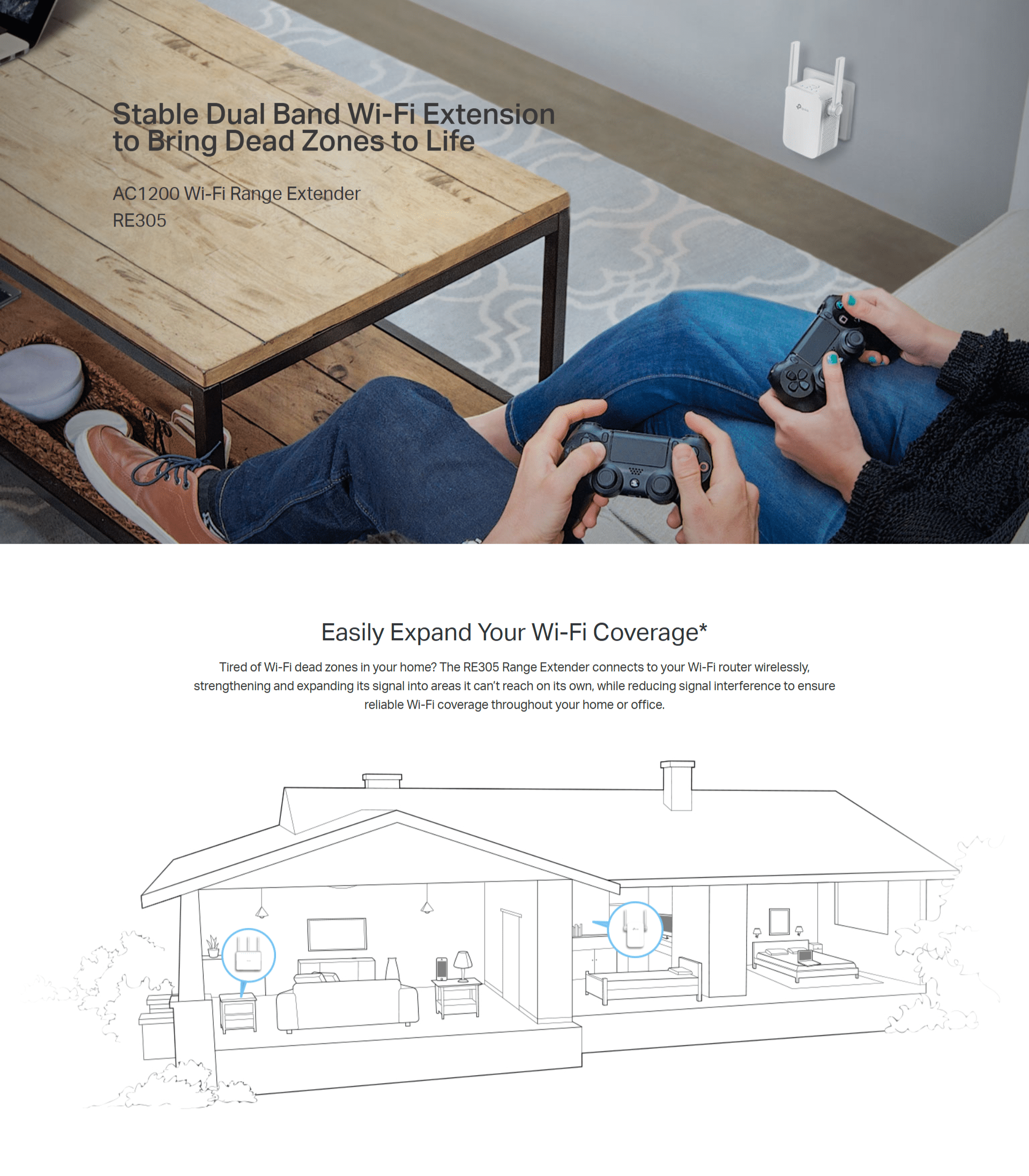- Brings Wi-Fi dead zone to life with strong Wi-Fi expansion at a combined speed of up to 1.2Gbps*